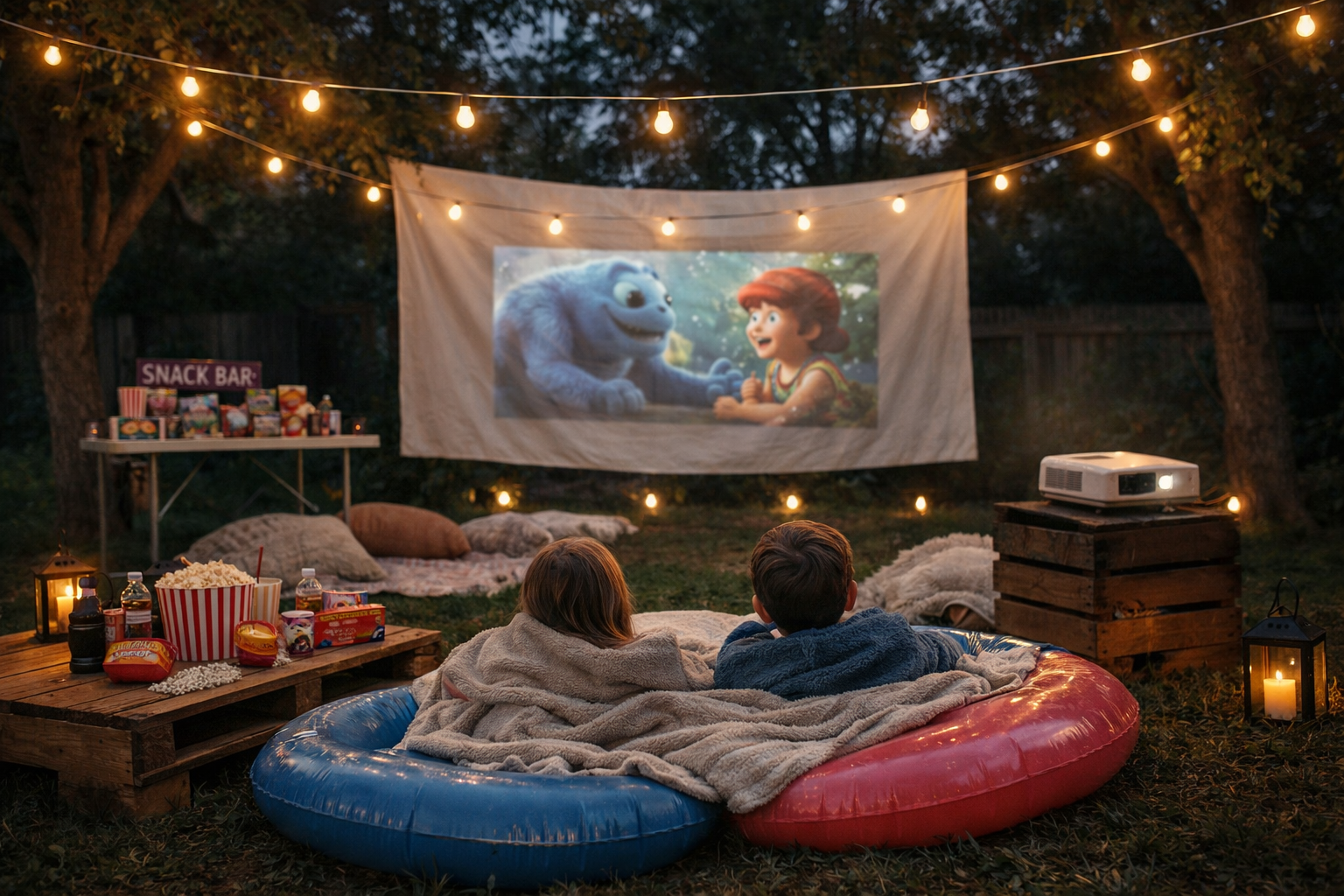 Hang a sheet on the fence or between two chairs, set up a projector or prop your laptop on a table, and pile up every blanket in the house. It takes maybe 30 minutes to set up and it feels completely different from watching a movie on the couch. Start it right before sunset and pick something they've already seen so nobody's upset when they fall asleep halfway through.